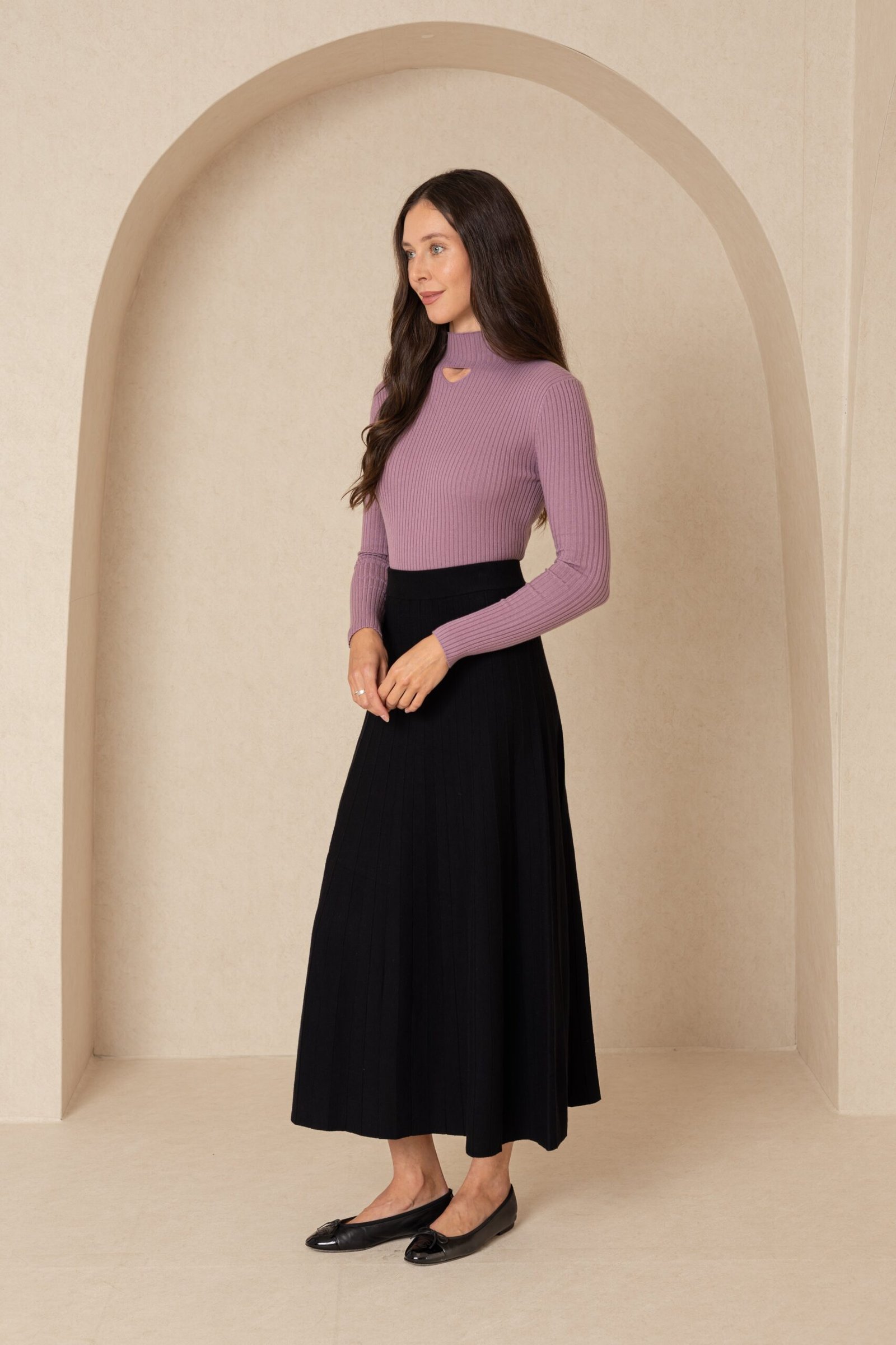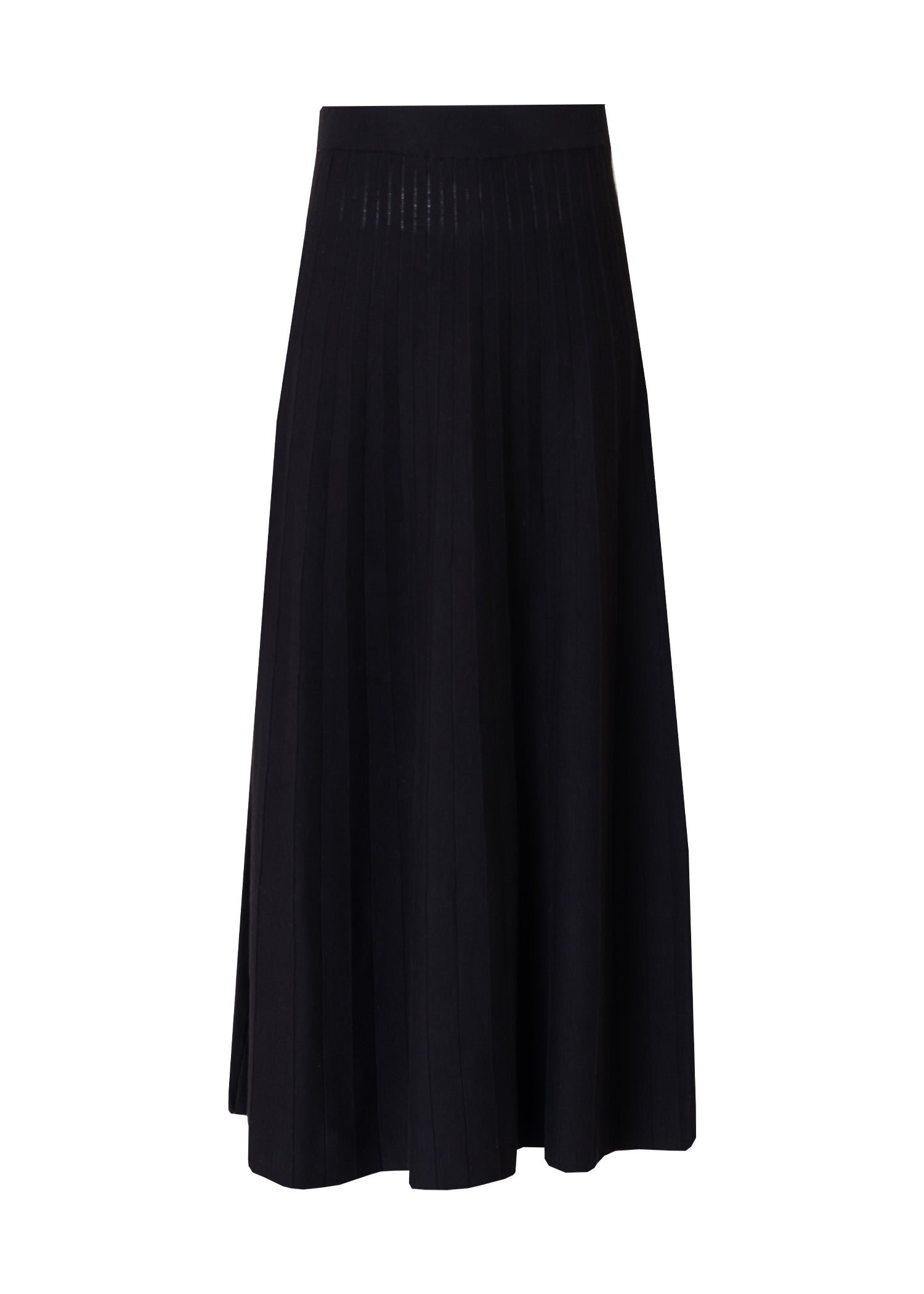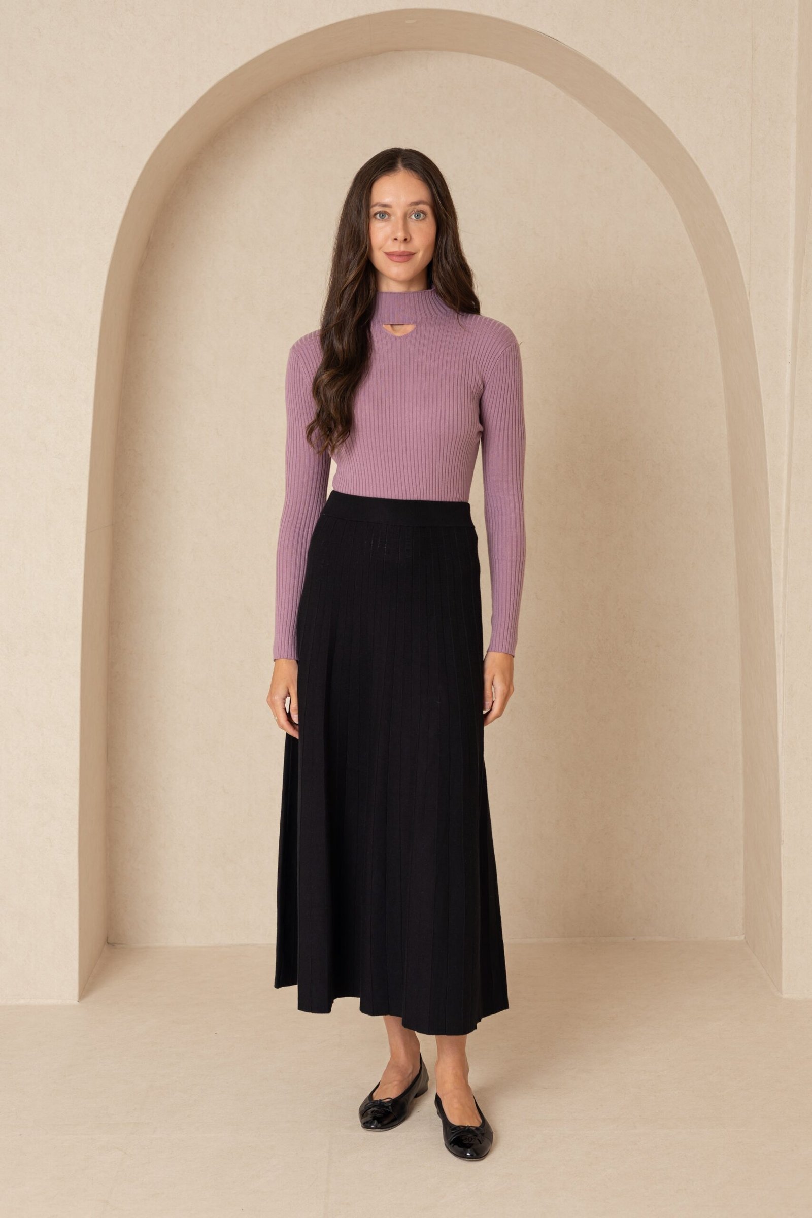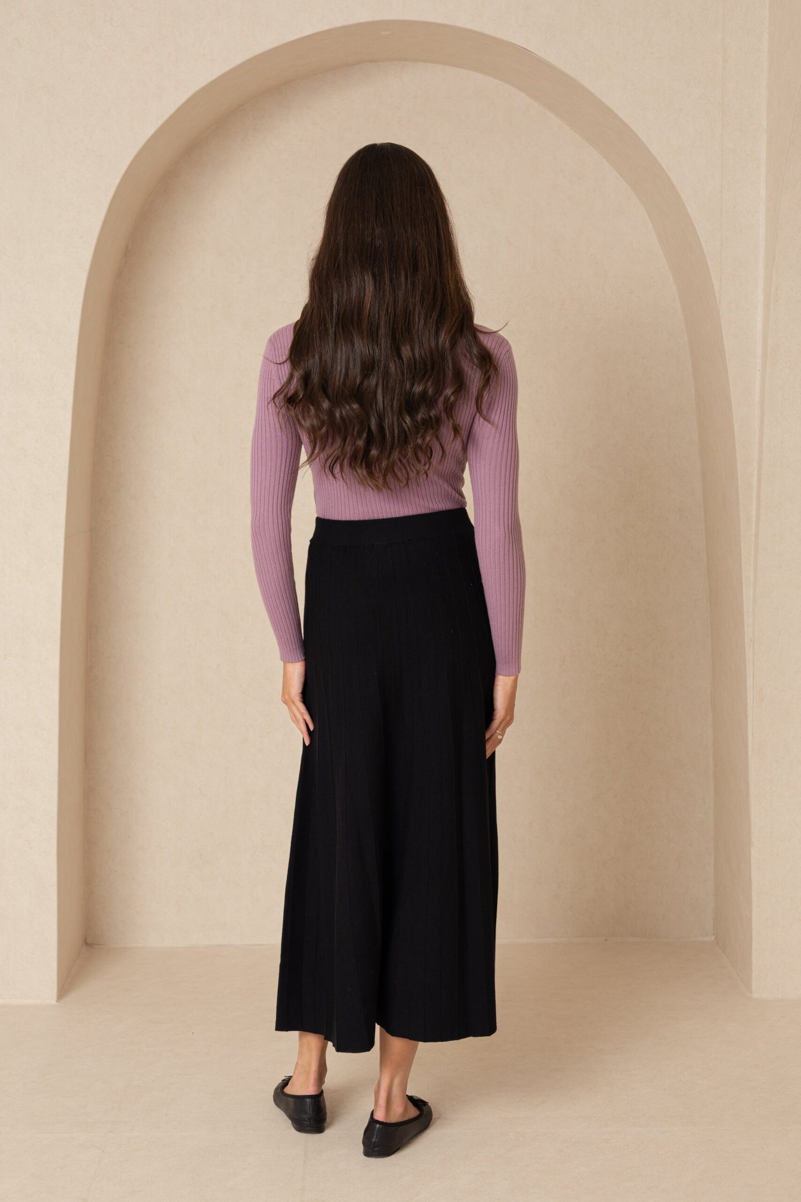 Black Paneled Knit Skirt Your effortless go-to for the season. With its clean. paneled design. it pairs perfectly with a cozy sweater and boots for a polished winter look. Comfortable and cozy. this skirt easily transitions from casual outings to more dressed-up moments—making it a must-have staple for colder days. Knit Material Elastic Waistband Maxi…