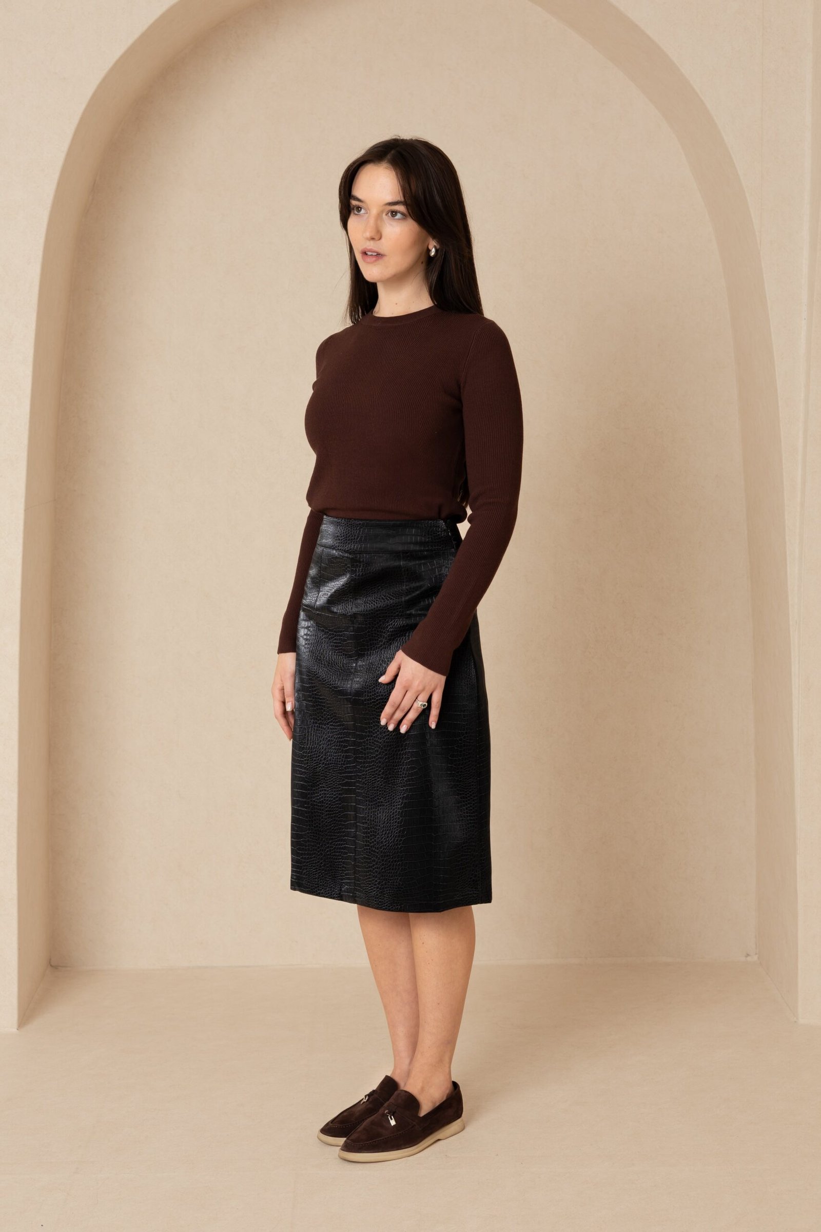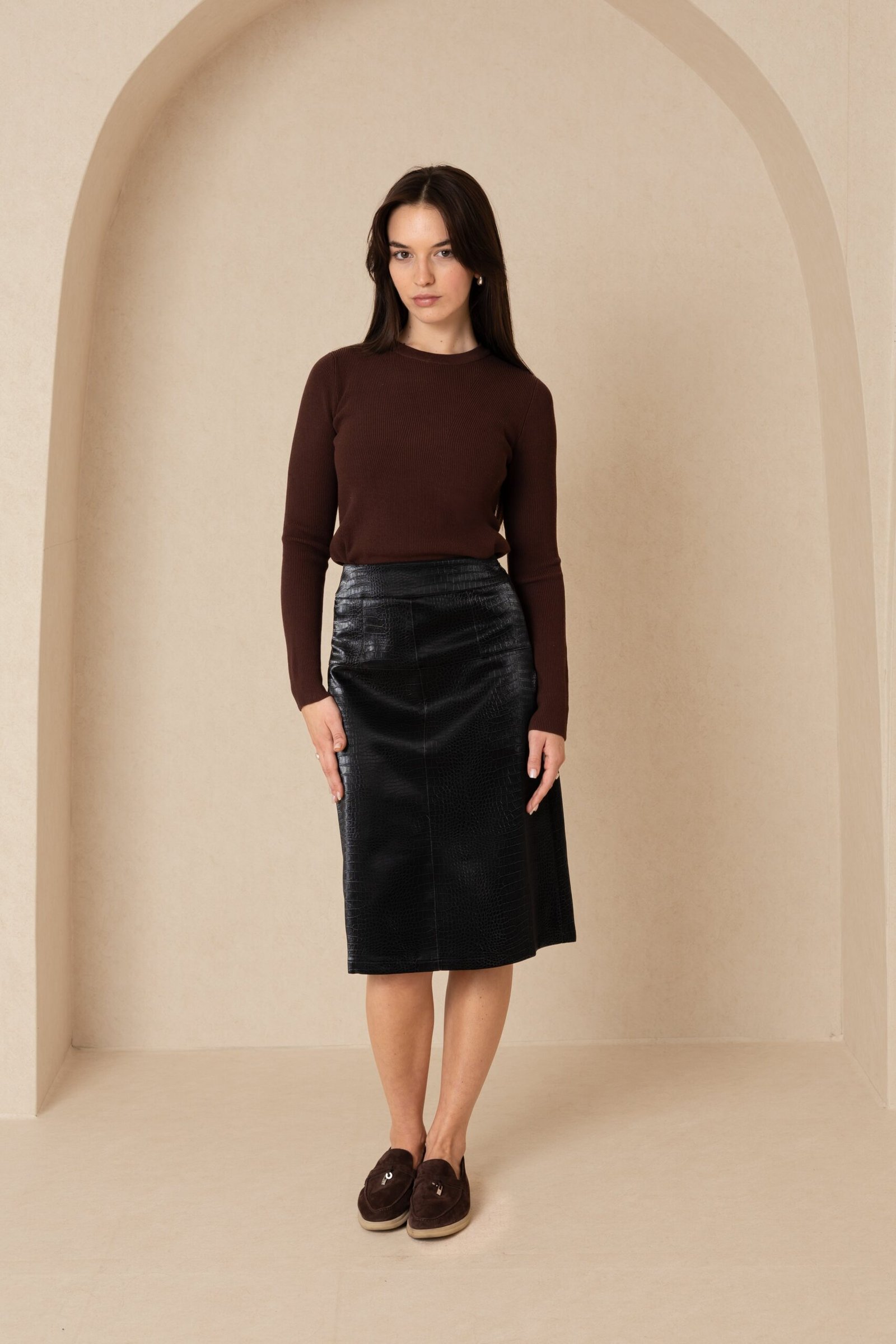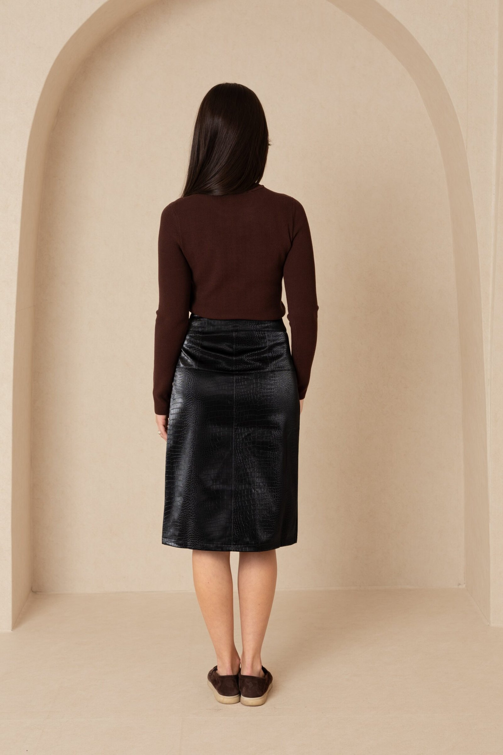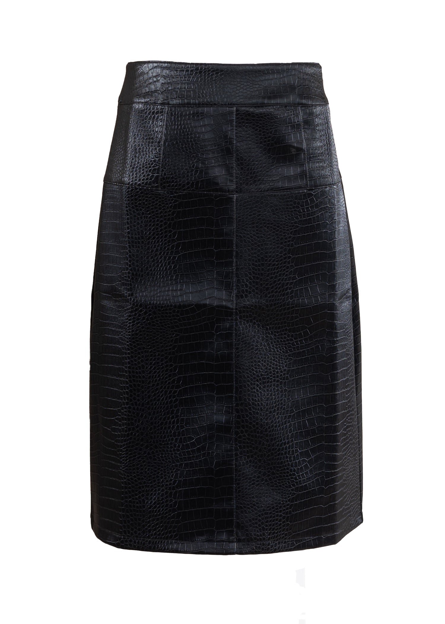 Elevate your Fall wardrobe with our sleek and sophisticated Snake Skin Leather Skirt. This staple piece features a striking snake skin pattern that adds a touch of edginess to any outfit. Crafted from smooth faux leather. this skirt boasts a luxurious feel and versatile design that can be dressed up or down!