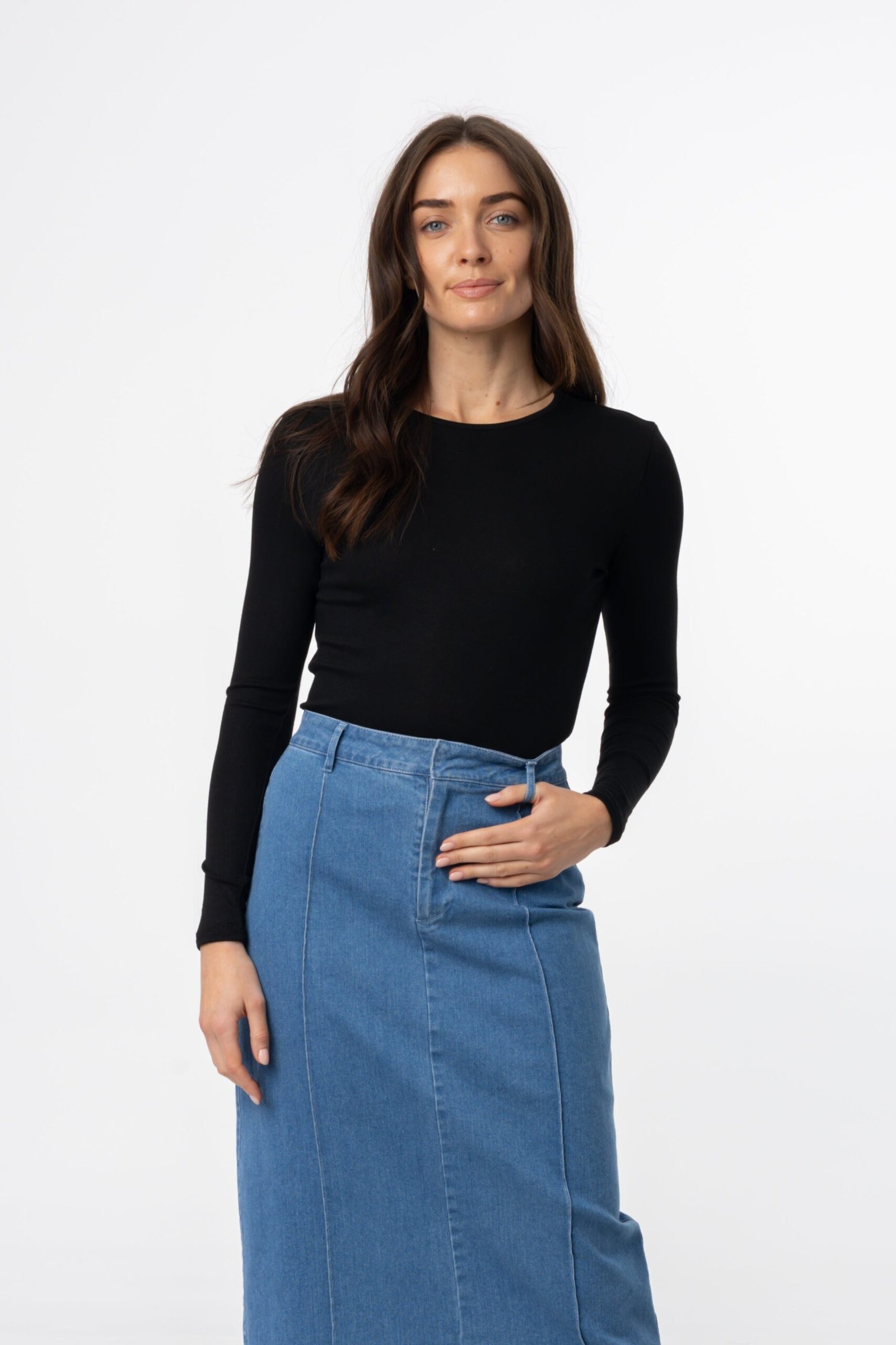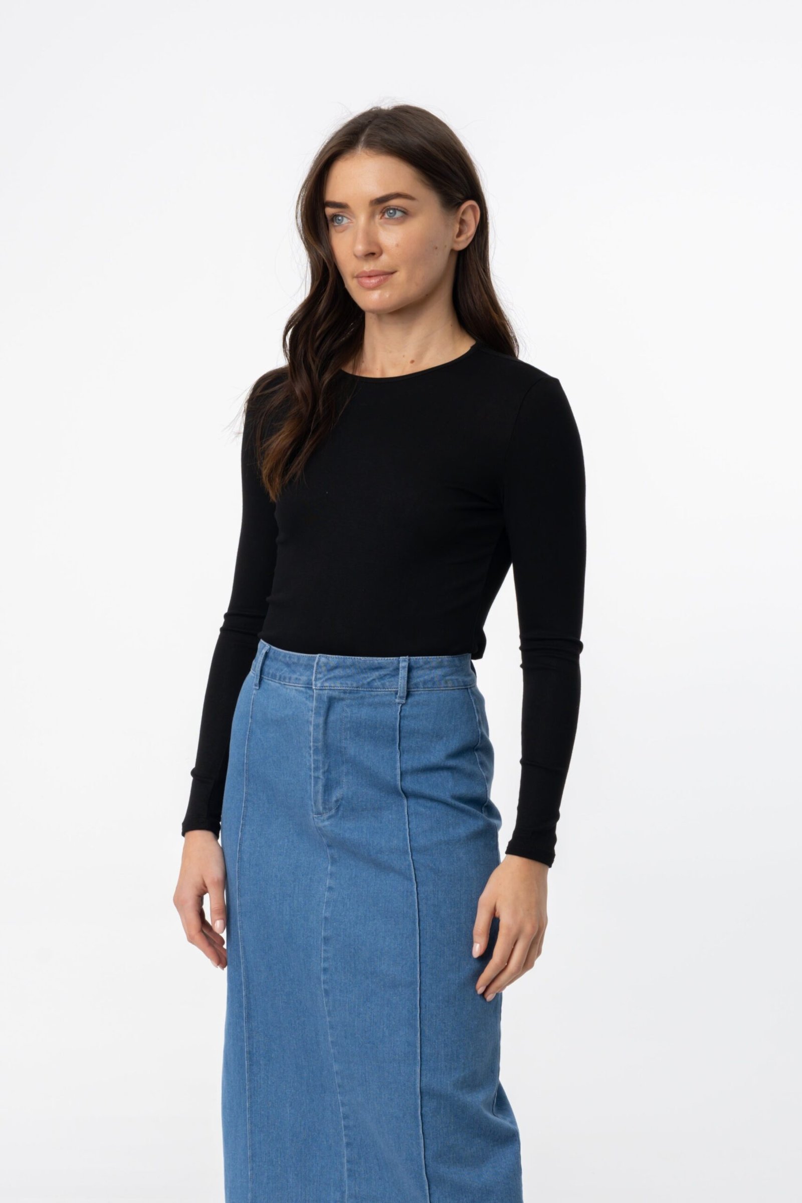 This buttery soft. basic long sleeve round neck t-shirt will be the new staple in your wardrobe. With its versatile design and comfortable fabric. you’ll never want to take it off! (Plus. it’ll make your everyday outfits feel extra cozy.)