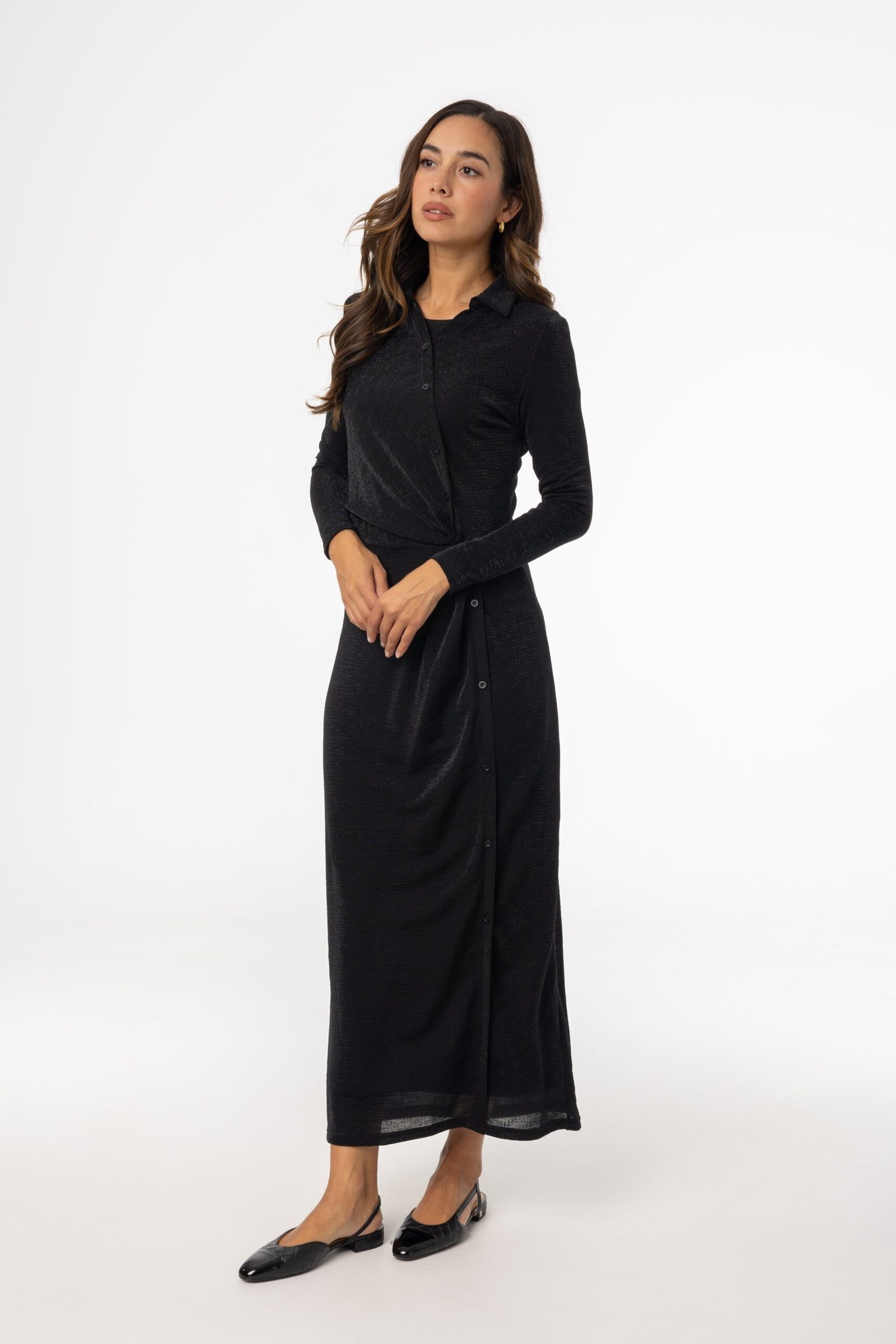 For nights that call for just a little sparkle. This maxi dress is designed to shimmer subtly. while the side button detail adds a modern edge. Perfect for beachside dinners or making an entrance at an event. Just add statement earrings and a sleek clutch for effortless glam. Because a little shine goes a long way.